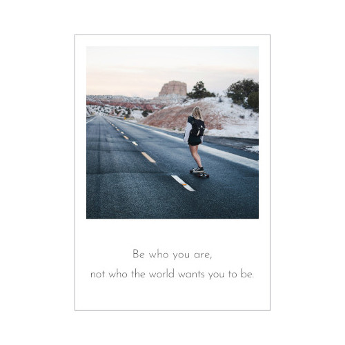 mit dem Spruch: Be who you are, not who the world wants you to be (Sei wie du bist, und nicht wie die Welt möchte, dass du bist )