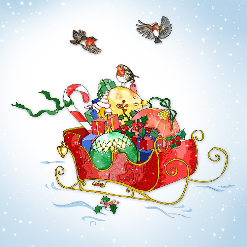 Die Weihnachtskarte Schlitten ist aus einer bunt-fröhlichen Serie von Clear Creations. Die Motive sind auffallend anders. Das Papier ist, wie immer bei Clear Creations, hochwertig und auf jedem Motiv ist ein Akzent mit Glitterdruck.
